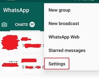 برای اینکه از عضو شدن خود در گروهها خودداری کنید، وارد اپلیکیشن واتس اپ شوید، بر روی سه نقطه ای که در گوشه ی سمت چپ بالای صفحه وجود دارد، بزنید تا بتوانید به بخش تنظیمات خود بروید.