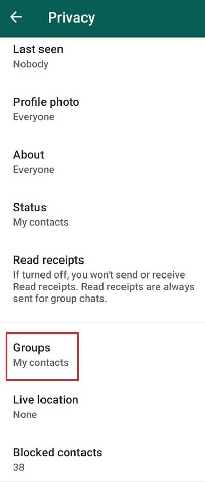 در صورتی که نمی خواهید به هیچ عنوان عضو هیچ گروهی شوید، باید Nobody که گزینه ی سوم در منوی بالاست را انتخاب نمایید و اگر دوست دارید مخاطبان شما بتوانند شما را عضو گروه کنند ولی هیچ کس دیگری نتواند این کار را انجام دهد، باید گزینه ی My Contacts را برگزینید. وقتی از عضو شدن خود در گروه ها جلوگیری می کنید، باید از گزینه ی حریم خصوصی نیز استفاده کرده تا وقتی ادمین گروهی می خواهد شما را به گروهی عضو کند، ابتدا برای شما پیامی ارسال می شود که آیا میل به عضو شدن در این گروه با این نام و این موضوع هستید، و در صورت تایید شما، به گروه عضو می شوید. ولی اگر تمایلی به استفاده از موارد بالا برای عضو شدن اجباری خود ندارید، می توانید به راحتی بعد از عضو شدن در گروهی، آن گروه را ترک کنید.