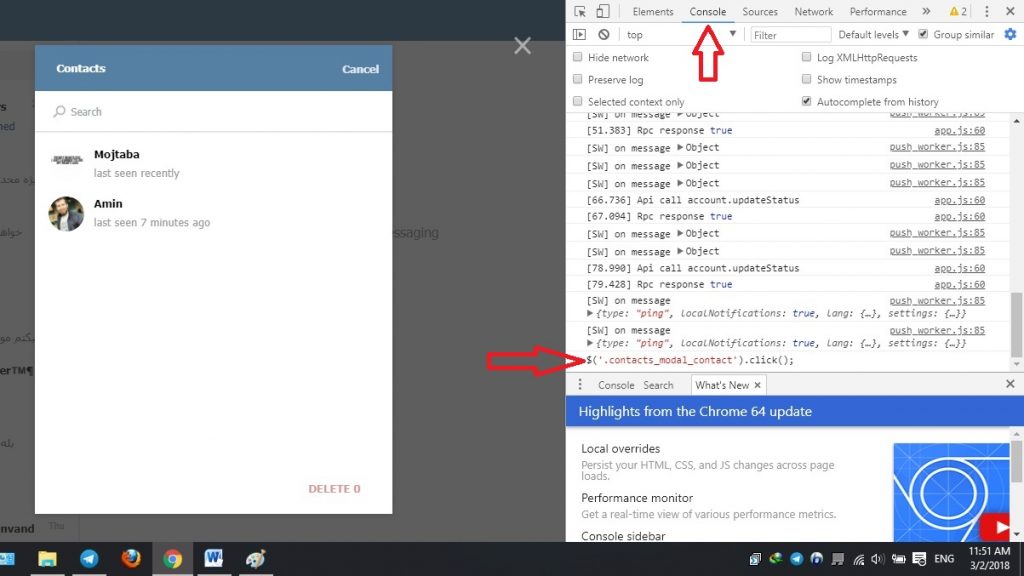 حذف همه ی مخاطبین تلگرام با نسخه وب تلگرام