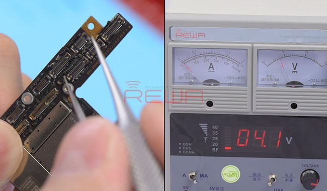 بنابراین باید سلف L2770 را جدا و یک سلف جدید جایگزین کنید. در ابتدا، لایه بالایی را به نگهدارنده بورد PCB وصل کنید. بر روی اجزا و قطعات اطراف سلف L2770، نوار چسب محافظ در برابر گرما بزنید. سپس سلف جدید را دوباره لحیم کنید. پس از اینکه خنک شد، دوباره از طریق اتصال به منبع تغذیه DC مقدار جریان را اندازه گیری کنید. اکنونف مقدار فعلی اندازه گیری شده روی آمپر سنج طبیعی است. خطا پاک شده است.