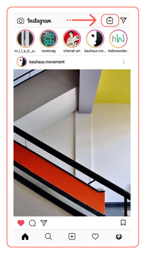 وقتی اینستاگرام شما به روز رسانی می گردد، آیکون IGTV در بالای صفحه Home قابل مشاهده می باشد. و با کلیک کردن بر روی این آیکون وارد IGTV خواهید شد.