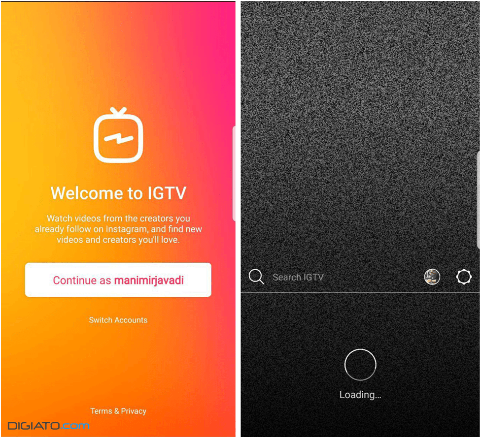 شما می توانید اپلیکیشن IGTV را به صورت جداگانه دانلود و نصب کنید و سپس مشخصات حساب کاربری خود در اینستاگرام را در این اپلیکیشن وارد نمایید و حتی این امکان وجود دارد که با مشخصات جدیدی وارد این برنامه شوید. و با وجود این برنامه، به صورت خودکار وارد بخش ویدئوها می شوید. در حال حاضر می توانید اپلیکیشن IGTV را برای دستگاه های اندروید و ios از گوگل پلی و mirror دانلود و نصب نمایید.