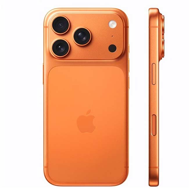 آیفون 17 پرو در سه رنگ عرضه میشود: نقرهای، نارنجی کیهانی (Cosmic Orange) و آبی تیره (Deep Blue). رنگ نارنجی بسیار جسورانه و جلبتوجهکننده است، در حالیکه مدل آبی حس ظرافت و وقار بیشتری دارد و تعادل زیبایی بین فریم آلومینیومی و شیشه پشتی برقرار میکند.